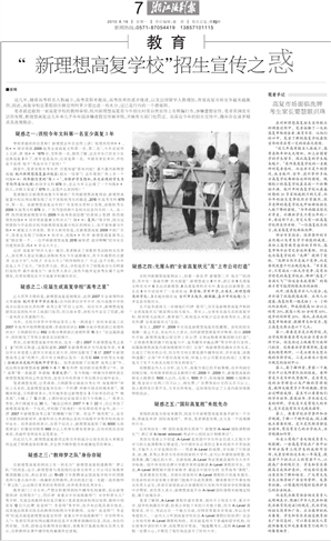 “新理想高复学校”招生宣传之惑