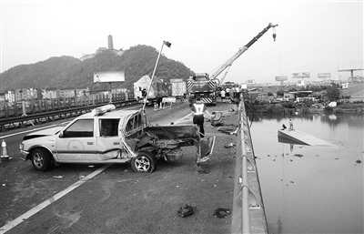 重型半挂车内共有3人,驾驶员在事故后从驾驶室内逃出,被当时路过的一艘渔船上的渔民救起,现在医院ICU病房,暂无生命危险。另外两名乘客则被困在驾驶室内,沉入水中。高速交警迅速联系海事部门调派水上吊船进行打捞。昨天下午4时36分,记者接到高速交警杭州支队的消息,两具乘客的遗体已找到。目前事故原因还在进一步调查中。