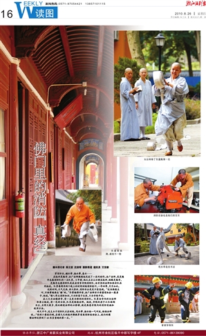 灵隐寺志愿消防队是我省首家寺院消防队,由寺里的法师和保安队共同组成。队员每周用两个晚上的时间训练消防技巧,一年四季,月月如此。