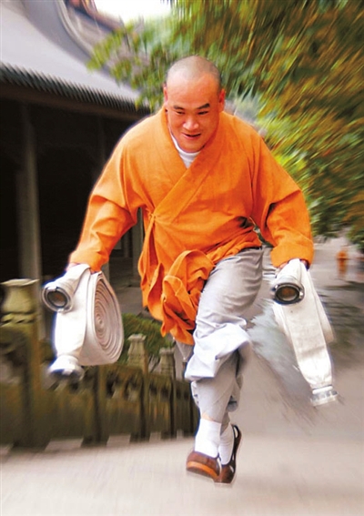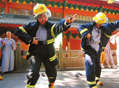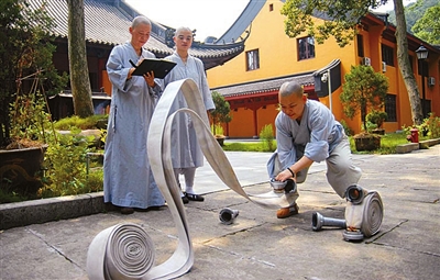 这段时间,天气炎热,香火很旺,消防安全更是不容忽视。“这活熟能生巧,不经常练要生‘锈’的。”尽管练得辛苦,法广法师并不希望有机会一展身手,他说,“僧人学点消防知识,只为防患于未然,只为寺院平安。