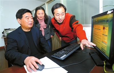 宋光宝在听取编辑部工作人员关于平安浙江网改版工作的情况介绍后,移动鼠标,认真地浏览起平安浙江网上的信息(如图)。