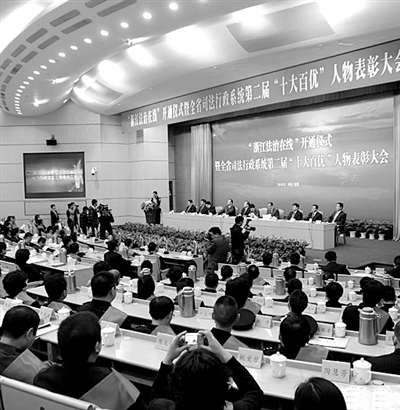 浙江法治在线的开通仪式同时也是全省司法行政系统第二届“十大百优”人物表彰大会。百名优秀人物一同见证了网站的开通,并带着各自的期待,当起了第一批“粉丝”。