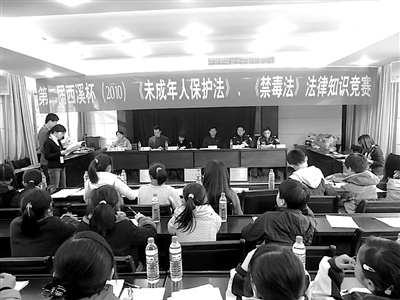 近日,杭州市西湖区普法教育办公室、西溪司法所、西溪街道禁毒办共同组织了第二届“西溪杯”法律知识竞赛,文一街小学、学军小学、文三街小学各自组队参加。比赛围绕《未成年人保护法》、《禁毒法》展开。