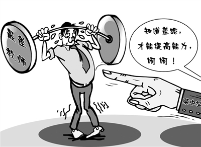 最近,陕西宜川县宜川中学高二年级组在教师中开展了一项评选“最差教师”的活动,该校高二年级组的60名教师人心惶惶,不知所措。学校却认为,这是为了找出教学实力弱的教师,帮其提高教学能力。