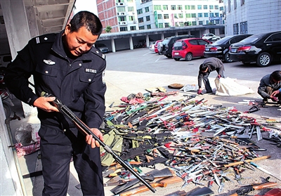 据介绍,此次收缴销毁管制刀具5000余把、枪支173把,同时抓获犯罪嫌疑人17人,查处相关案件23起。