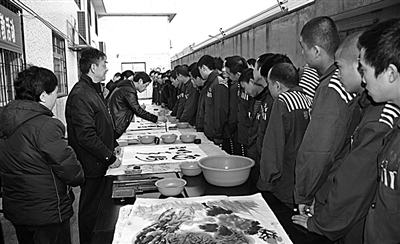 12月12日,桐乡市看守所开展“扬起风帆、继续人生”送艺术、送关爱主题帮教活动,书画家袁道厚率弟子现场泼墨,并将60多幅精美的书画作品赠送给看守所。