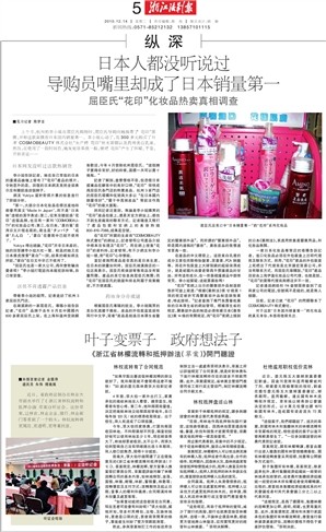 在湖滨路的一家屈臣氏,导购小姐告诉记者,“花印”品牌于去年8月在中国国内600多家屈臣氏上架,在上海和温州受到顾客欢迎,今年4月登陆杭州屈臣氏。“这个牌子卖得非常好,好的时候,面膜一天可以卖十几瓶。”
