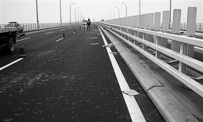 zd23013115:还算幸运,没有人员损伤,不过车子就比较惨了。那天下午,小邵开着雪铁龙汽车回宁波,刚开过跨海大桥海中平台五六公里,突然看见前方车道上有一地的钢钉。他来不及打方向,车子就碾了过去,顿时方向失控一头撞上了中央护栏。