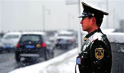 昨天,我省迎来了2010年入冬以来的第一场雪。从清晨开始,雪花绵绵不绝地洒落。在大雪的映衬下,坚守在一线岗位的武警、交警和消防官兵们显得越发可敬可爱。