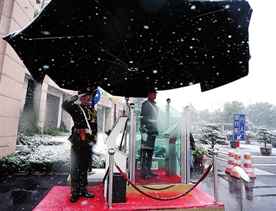 省府警卫中队的战士依然以标准的姿势坚守在岗位上 陈立波摄