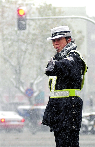 雪天给交通也带来了巨大压力,马路上随处可见的是交警忙碌的身影。看到了他们,出行的市民们心中就踏实多了。