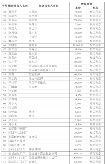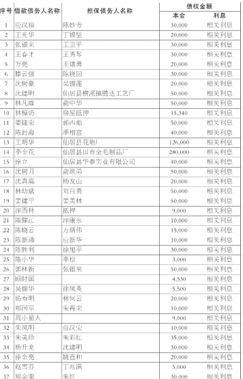 台州市中海企业策划有限公司作为上述债权的受让人,现公告要求下列债务人及担保人,从公告之日起立即向台州市中海企业策划有限公司履行主债权合同及担保合同约定的偿付义务或相应的担保责任。