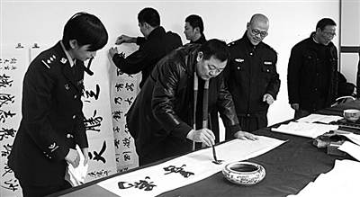 为提升民警文化品味、丰富警营文化生活,前天下午,温州公安局龙湾分局沙城派出所邀请了一些知名书法家到该所开展现场书法创作活动。