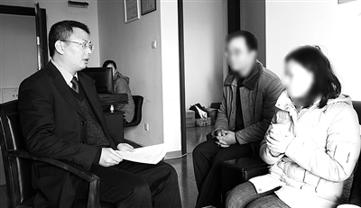 何肖龙律师(左一)在为精神残疾人及家属提供法律咨询。王志浩摄