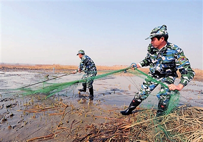 和盗捕行径做斗争的,是杭州萧山区林业局林业执法中队定期开展的“清网”行动。