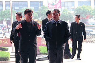 金华市委副书记、代市长徐加爱(前右)在徐建新院长(前左)的陪同下考察法院工作