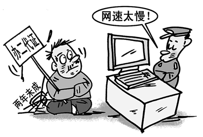 据媒体报道,2008年,河南新野县的冀先生到当地派出所办理第二代身份证,两年时间过去了,二代证还没办下来。派出所称,这与“网速太慢”有关,并表示这种情况有好多,不止一个。