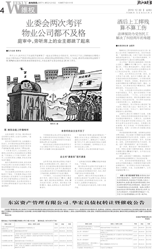 缘分物业则对这两次考评也颇为不满。“考评应该由街道、社区等第三方组织,业委会没有资格组织考评。而且,考评不能代表全年的服务质量。”