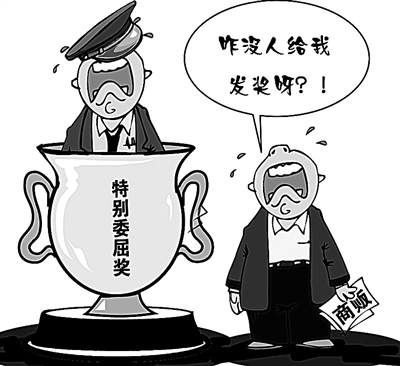 江苏江都市日前召开了城管工作年度总结会,一名城管队员获“特别委屈奖”。他在处理一次占道经营时,遭摊主辱骂并被摊主撕破衣服,相持3个多小时,他始终坚持说服教育,骂不还口、打不还手。