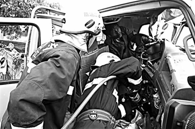 车祸人员被困消防成功营救