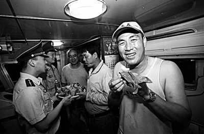 端午节前,来自台湾的小额贸易货轮“闽台轮”在温州霞关码头停靠完毕,登船检查的边防派出所官兵把他们亲手包制的粽子和咸鸭蛋送到台轮水手们手中,与一路辛劳的台胞共叙佳节。