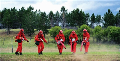 端午节期间,担负大兴安岭南部20多万平方公里森林草原防火任务的武警内蒙古森林总队呼伦贝尔森林支队加强特殊环境扑火演练。6月6日,该支队红花尔基大队官兵在樟子松原始林区进行了实兵整装演练。