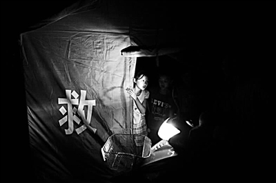 贵州省望谟县“6·6”抗洪抢险救灾指挥部在县广场上搭建了30余顶救灾帐篷,100多名家中房屋被洪水损毁的灾民被安置其中。图为7日,一个小女孩从帐篷内探出头来与人交谈。