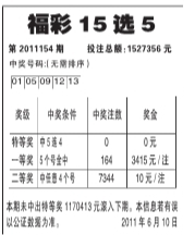 浙江法制报世相03福彩15选5 2011-06-13 2 2011年06月13日 星期一
