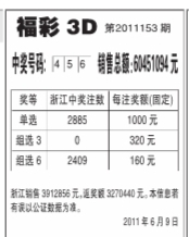浙江法制报世相03福彩3D 2011-06-13 2 2011年06月13日 星期一