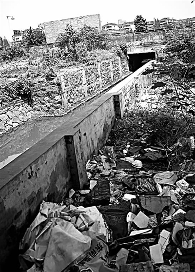 杭州的钱江新城美丽又富有现代感,但是在临近解放东路与富春路交叉口旁的一条小河,河水乌黑,浑浊不堪,散发着阵阵恶臭,河边垃圾成堆,与周围的宏伟建筑显得格格不入。