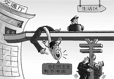 广西壮族自治区交通厅办公大院与生活大院分别位于南宁市新民路两侧,有座横跨新民路的人行天桥连通两院,交通厅员工上下班极方便,但行人没法使用,过马路要么绕道,要么横穿车流。