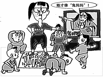 日前,几十位家长站在山东济南世纪佳园内大风车幼儿园门口维权。他们告诉记者,他们的孩子在该幼儿园遭到了一名老师的体罚和虐待,孩子们被要求做金鸡独立、下跪、双手抱头蹲下等动作。而老师给孩子们看的动画片竟然是《鬼妈妈》。