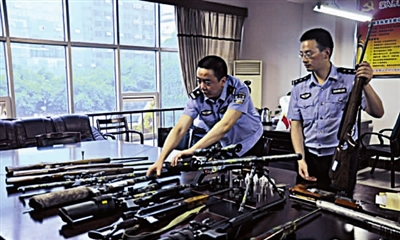 14日上午,记者见到了被警方收缴的11支高压气枪,其制作精良,可媲美真枪。
