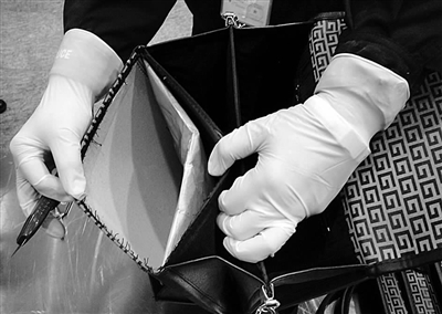 海关缉私警察立即赶到并对两名嫌疑人进行盘问。经初步了解,女嫌疑人MARY、男嫌疑人JACK是姐弟关系,均为菲律宾籍无业人员。缉私警察对2人携带的2个登山包和4个手提包逐一检查发现,每个包里面均有细密缝合的夹层,里面共有12个包得严严实实的牛皮纸包,每个纸包里都装满了白色粉末。