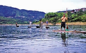 在珊溪水库,村民基本利用竹排下网捕鱼