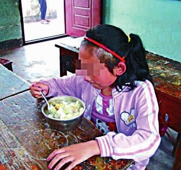 为什么不买肉呢?丹丹扑闪着大眼睛告诉记者,素菜每顿2.5元“,不吃肉可以为妈妈节约很大一笔钱呢”。丹丹的妈妈杨美兰是湖北利川人,一直在外地打工,极少回家。丹丹缺乏父爱,她最大的心愿就是见到妈妈。