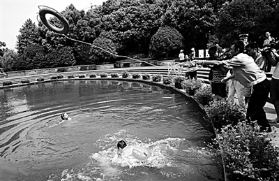 昨天上午,杭州余杭警方在临平水景公园举行落水者营救、跳河轻生者救援及沉水者打捞等项目的演习。来自当地学校的50多名学生观看了整个演习。现场的民警结合演习内容给学生上了一堂生动的安全防范课。