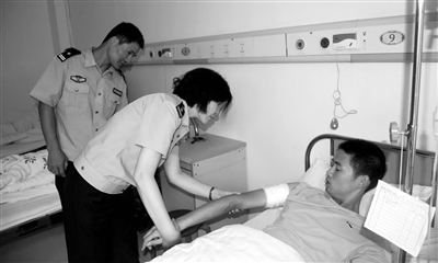 行凶的吴某涉嫌赌博罪,今年2月被列为网上逃犯。当天上午,王少华和同事去某小区抓捕时,被嫌犯用菜刀砍中右臂,顿时血流如注。吴某被当场抓获。经医生诊断,王少华右臂伤口很深,所幸未伤及经脉。