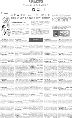 孕期4次照B超仍生下畸形儿