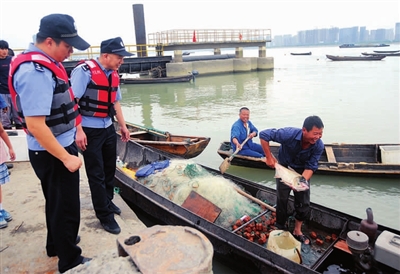 这就是刘朝玉和同事们的工作之一。夏天,在钱塘江捕鱼、游泳的人增多,船上作业的人们也因炎热放松了警惕。刘朝玉说,美丽的钱塘江其实充满着危险。而他们的工作就是,让人们远离这些危险。