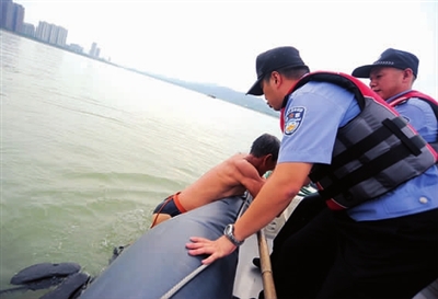 “怎么不能啊,我今天还打算横渡钱塘江呢!”“您赶紧上来,有人看到您,给我们打110报警了!”