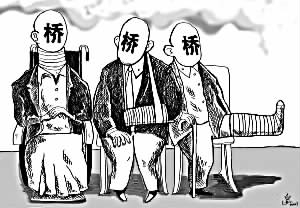 这样的事故,让人不由回溯近年发生的一系列垮桥惨剧:2010年的河南栾川大桥,2009年的湖南株洲高架桥,2007年的湘西凤凰桥,1999年的重庆綦江彩虹桥……对于一个有着数千年造桥历史、建于1400多年前的赵州桥迄今仍然屹立的民族,却必须接受“桥塌塌”频发的现实,令人痛心,也让人追问:我们的路桥是否“提前”进入了风险期?