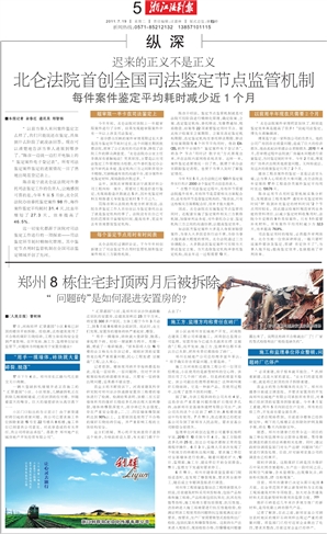 这一切变化都源于该院对司法鉴定工作进行的一项探索———司法鉴定环节耗时精细化管理,其中鉴定节点用时监管机制在全国司法鉴定领域开创了先河。