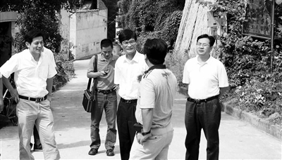 义乌市法院院长范锡祥(中)在新农村建设联系点调研