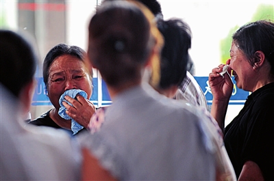 新华社鞠焕宗摄 7月25日,几位刚刚确认亲人遇难消息的亲属伤心痛哭。