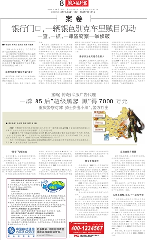 “这些人的作案方式都是尾随银行取款者进行跟踪盗窃或飞车抢夺,所以,取款者在携款离开银行时,务必要提高警惕,同时尽量不要把数额巨大的现金留在车上,汽车绝不是保险箱。”办案民警提醒说。