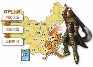 其一,通过团伙成员“网络灌水”,营造舆论,以此自抬身价并主导压低经营权收购价格。其二,对于“警告”后仍“不服从收编”的私服发布站,在“超级黑客”胡伟的指导下实施黑客攻击。其三,对于少数也有高端技术支撑的网站,该团伙竟然买通了IDC(互联网数据中心)机房,直接实施断网处理。