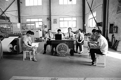 全国优秀法官郑国栋(右四)到企业开庭审理专利侵权纠纷案