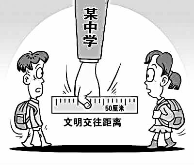四川成都某中学规定学生异性“文明交往距离”。朱慧卿画