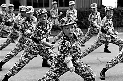 7月25日,为期15天的第七届“香港青少年军事夏令营”已经进行了8天,215名香港青少年顶着烈日在解放军驻港部队新围军营里刻苦训练。图为当天学生们在进行军体拳训练。